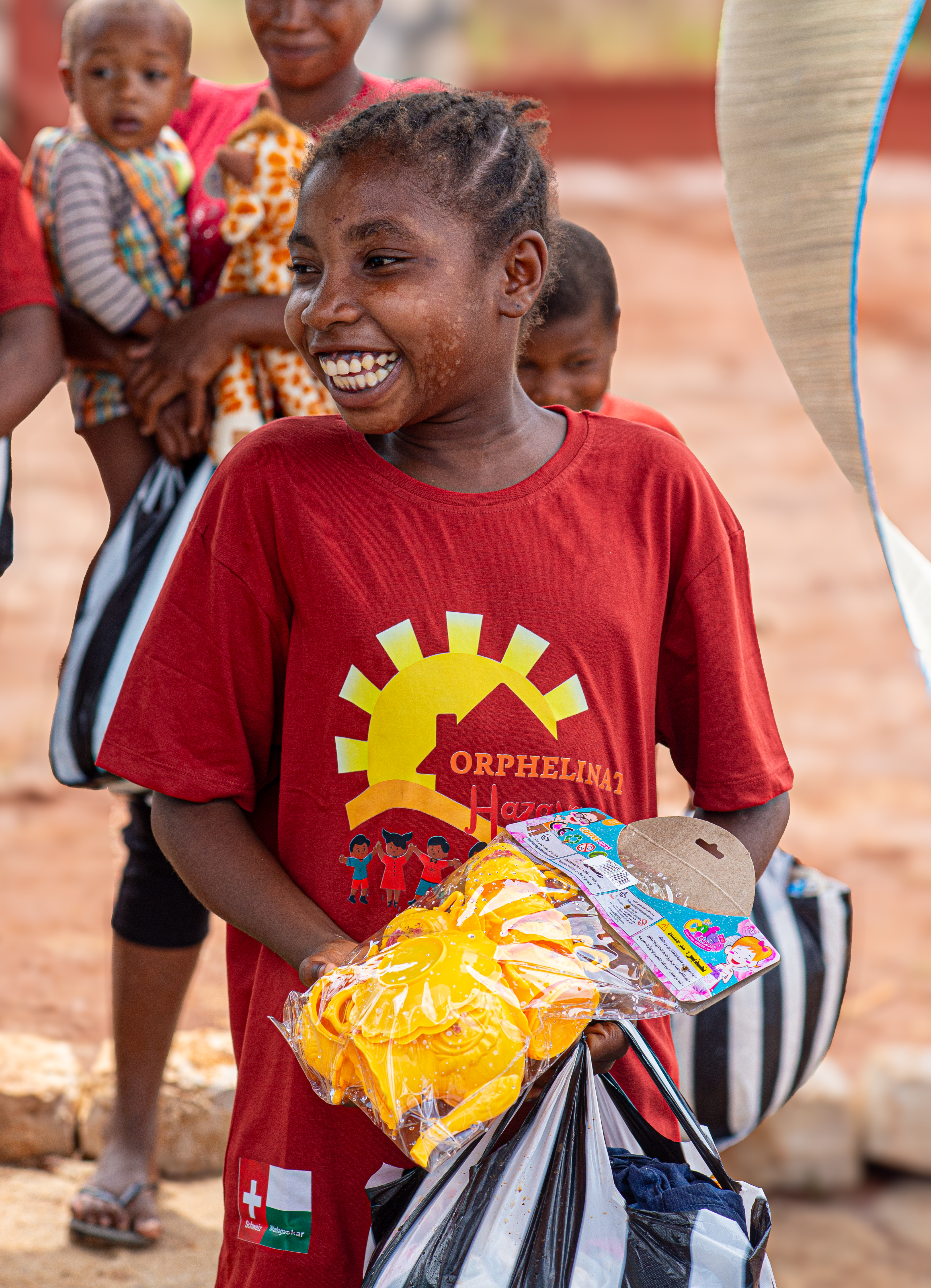 “Thanks to the many donations, we were able to give the children new clothes and Christmas gifts. What could be more beautiful than seeing those children’s eyes shining with joy. A beautiful and grateful day for the children of Orphelinat Hazavana. A big thank you to everyone.”